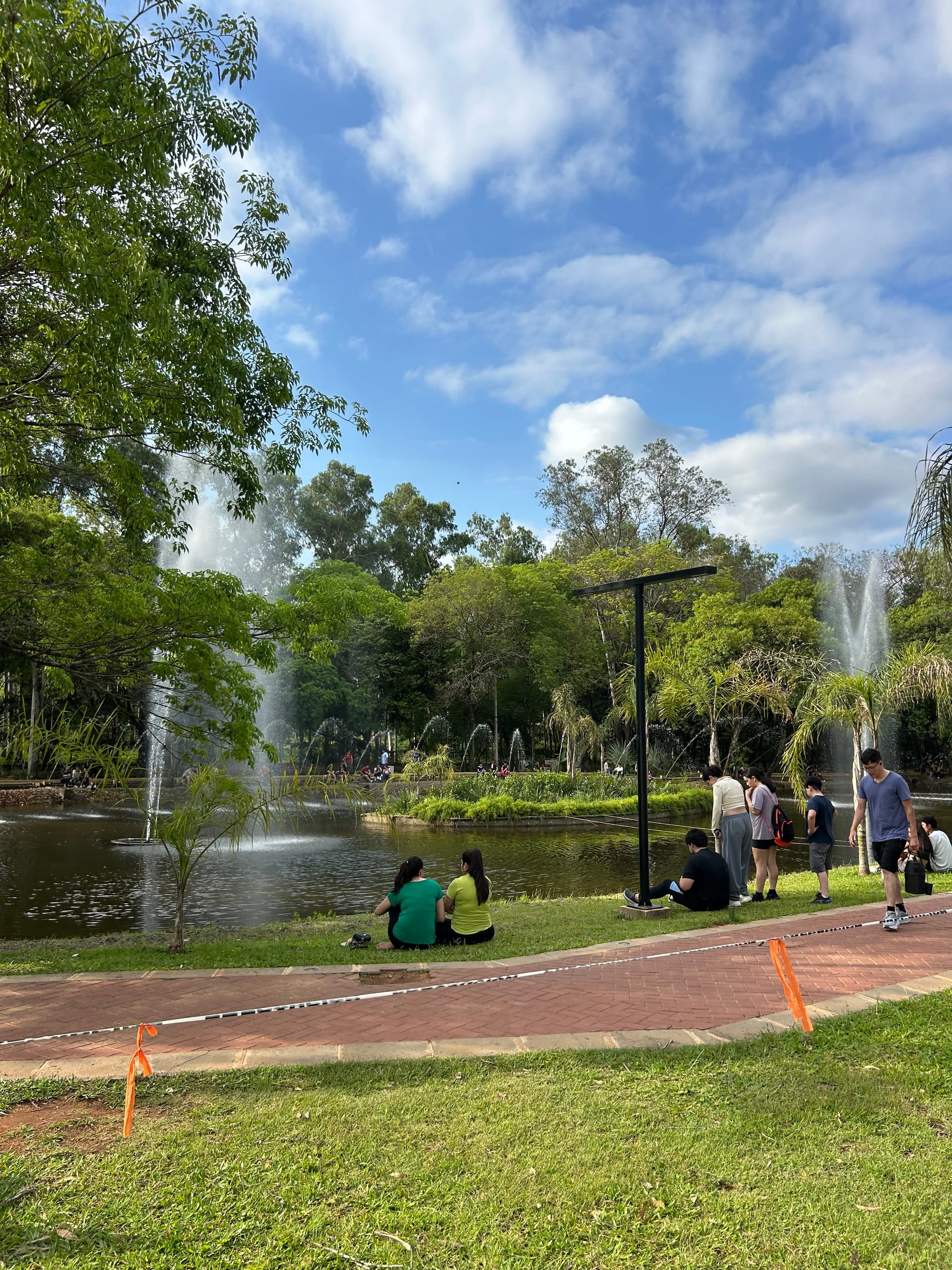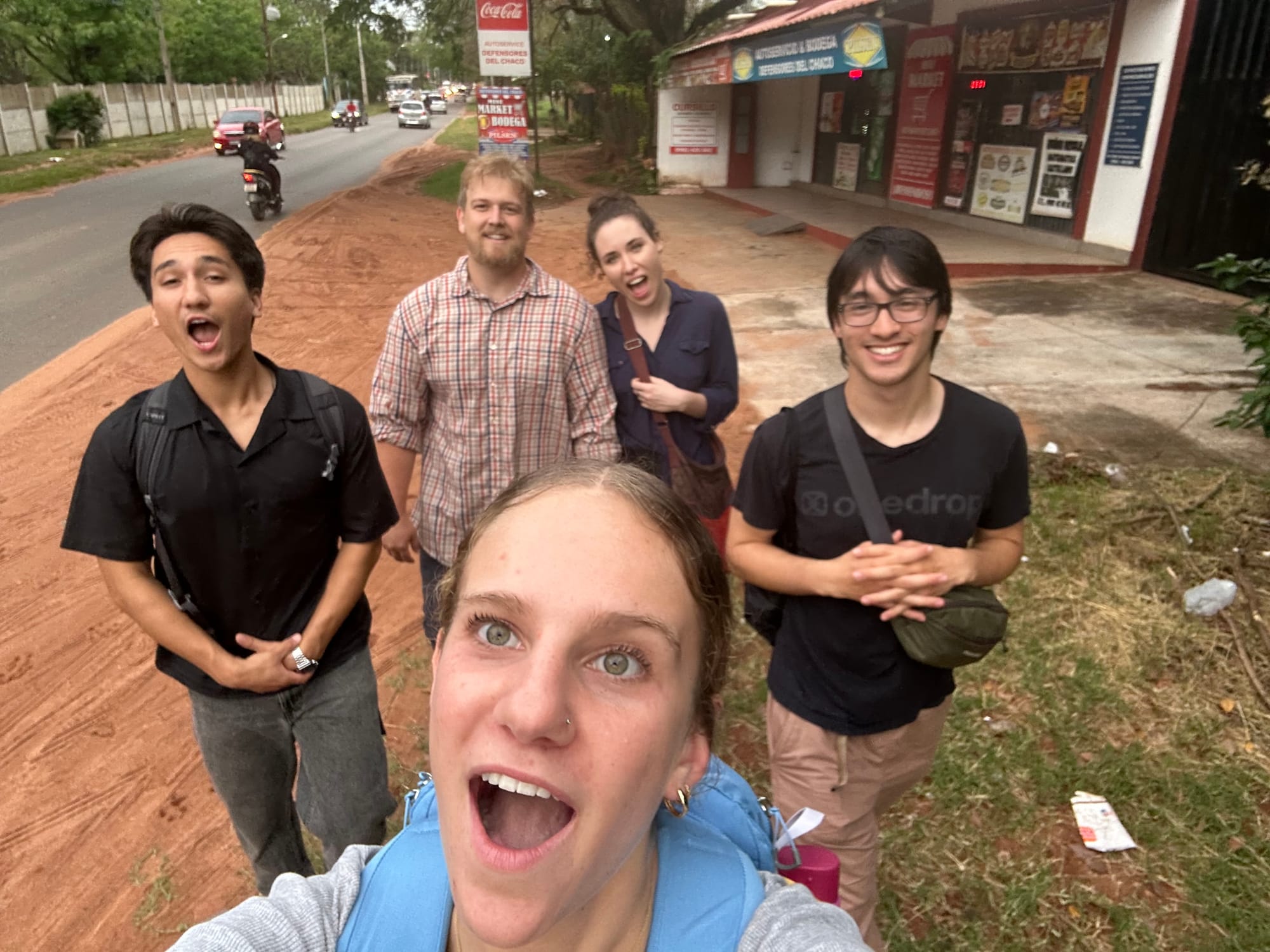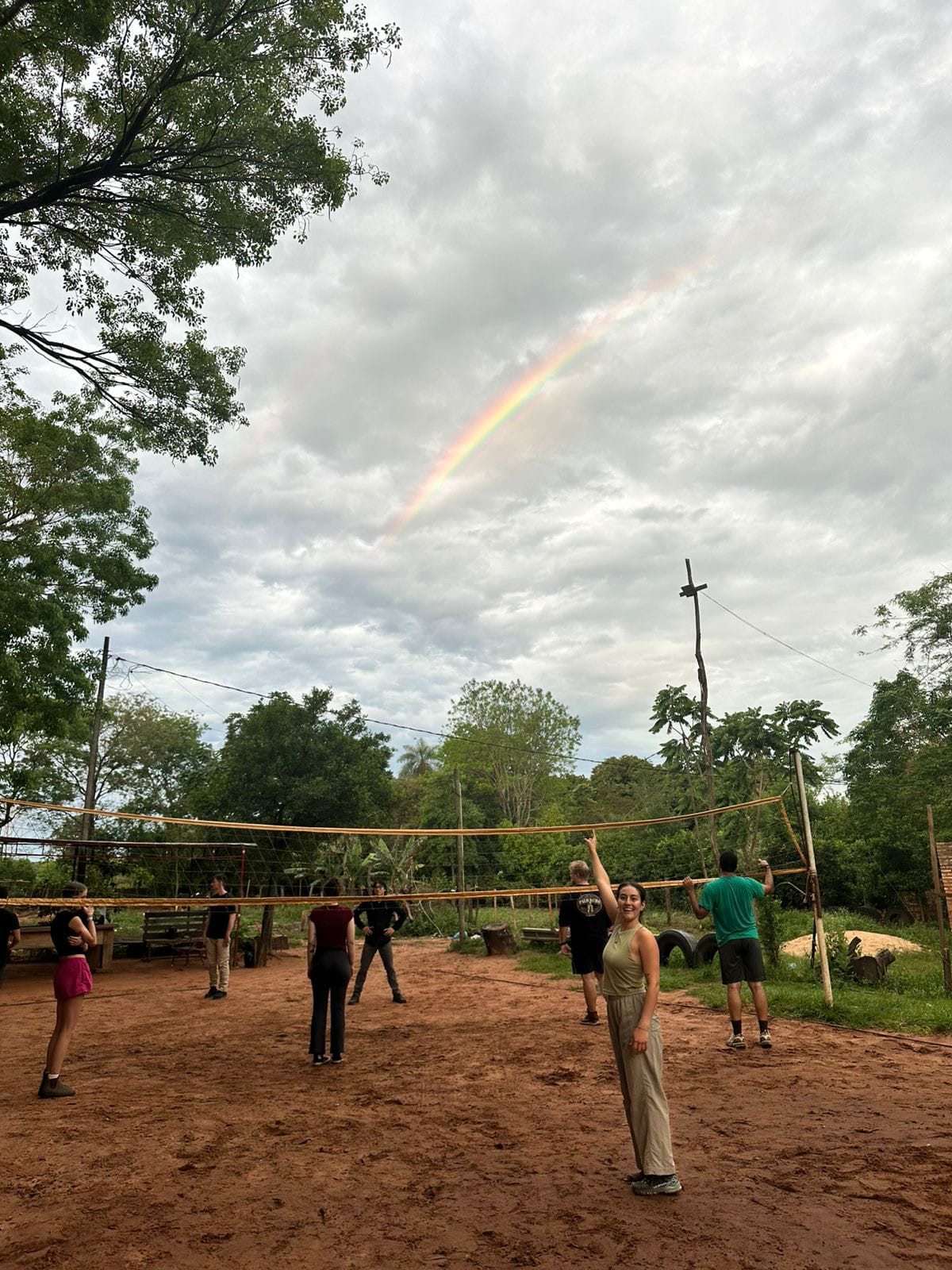 Voleiból con un arcoiris, the river my street became in the rain, a walk with my fellow isla members (Kai, Lee & Delaney, (the cohort's only couple) and Josh from L -> R) and the neraby city of Ypané, the gorgeous sunrise and city parks on my adventerous runs
