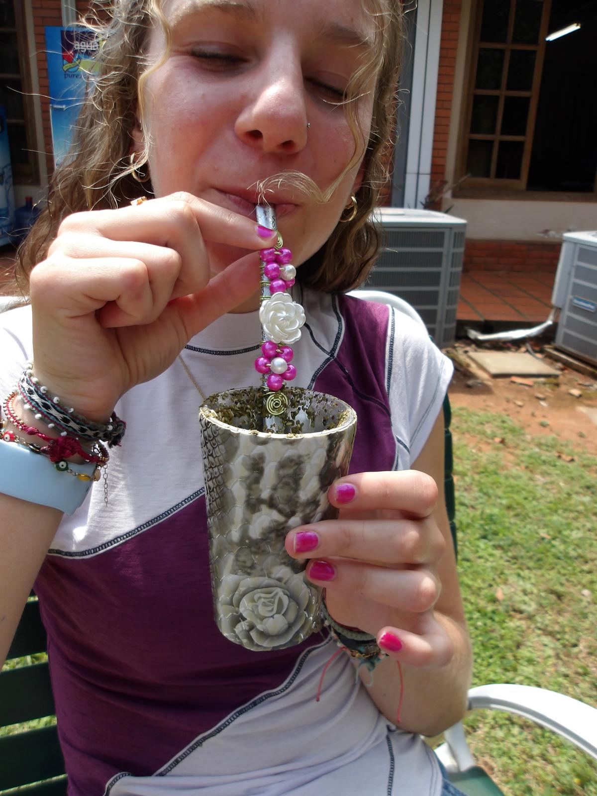 Mixing hierbas for Tereré, the PC training center, and our Paraguayan welcome hats