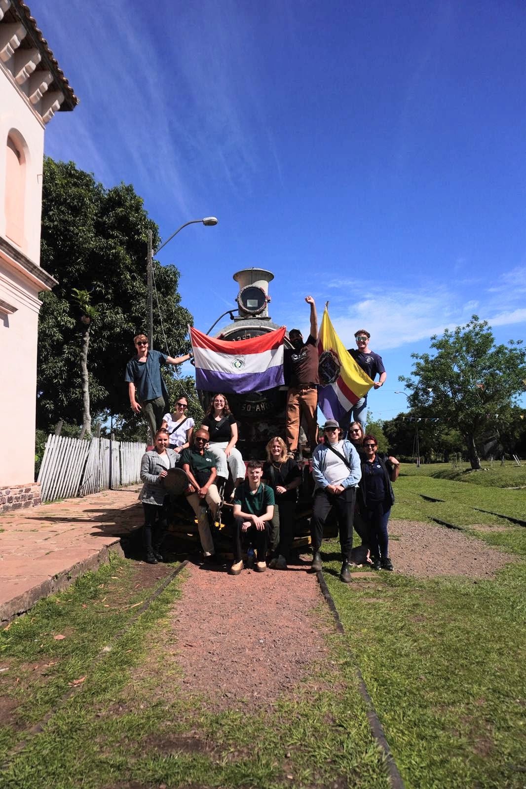 Pirayú - ñanduti, the town square, and the old train. Also site selection day - getting my site and celebrating after