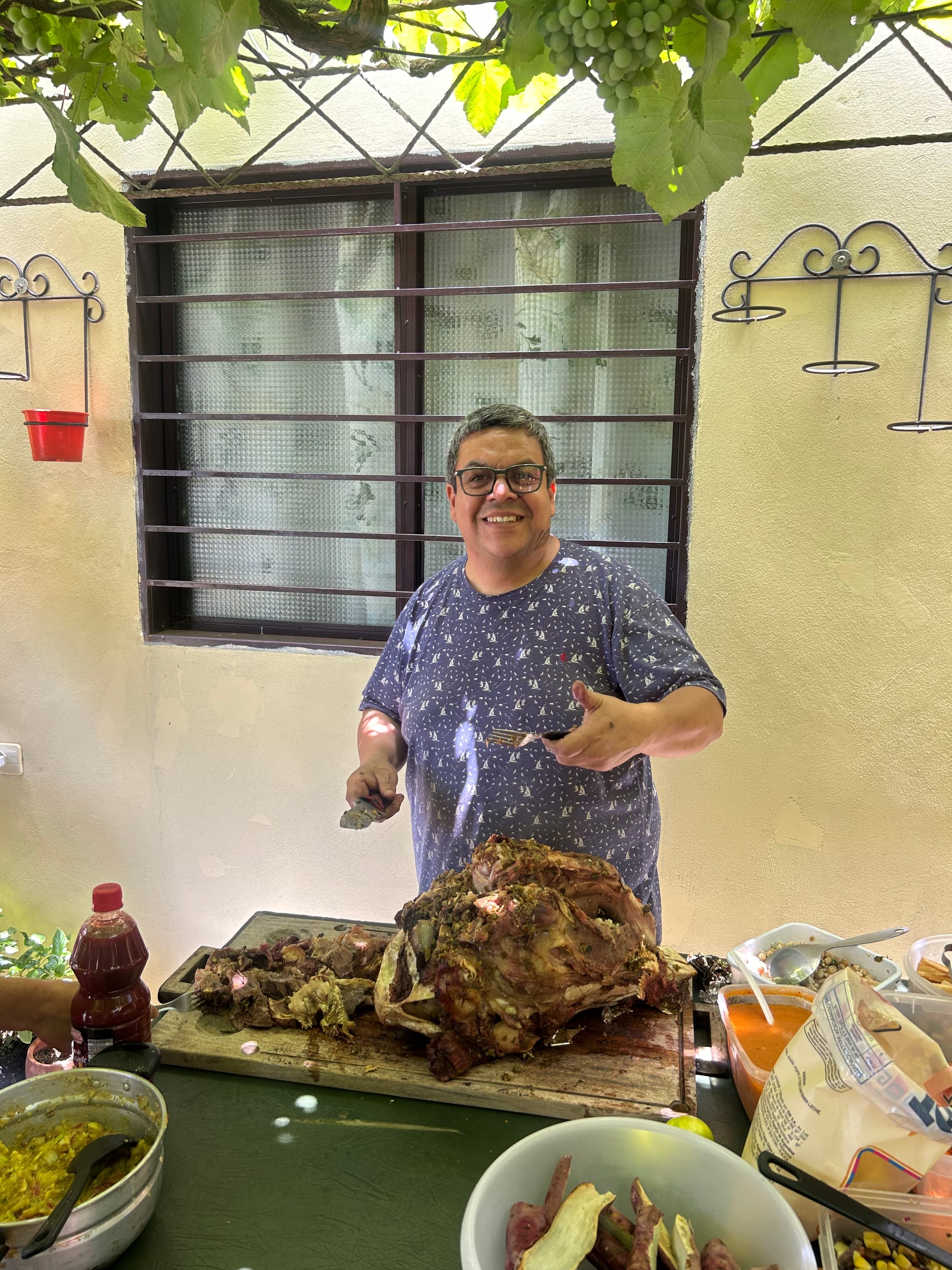 The weekend after I returned from my site visit, my host family in Costa Alegre hosted a cow head barbecue as a goodbye party for the volunteer from C-6 who stayed with them when she was in training two years ago. I invited my friends, who brought delicious salads and dips, and we all tried cow head for the first time. Although it sounds strange, the "normal" parts of the head (i.e. not the brains or tongue) were extremely tender and yummy since the head had been cooking "low and slow" for 5 hours. Elva, my host mom, loves to eat the brain and was very adamant that I try some too. It tasted like fatty pâté, and I do not think I will be eating brains again. The whole day was very sweet, and probably one of the funnest days I've had here in Paraguay so far!