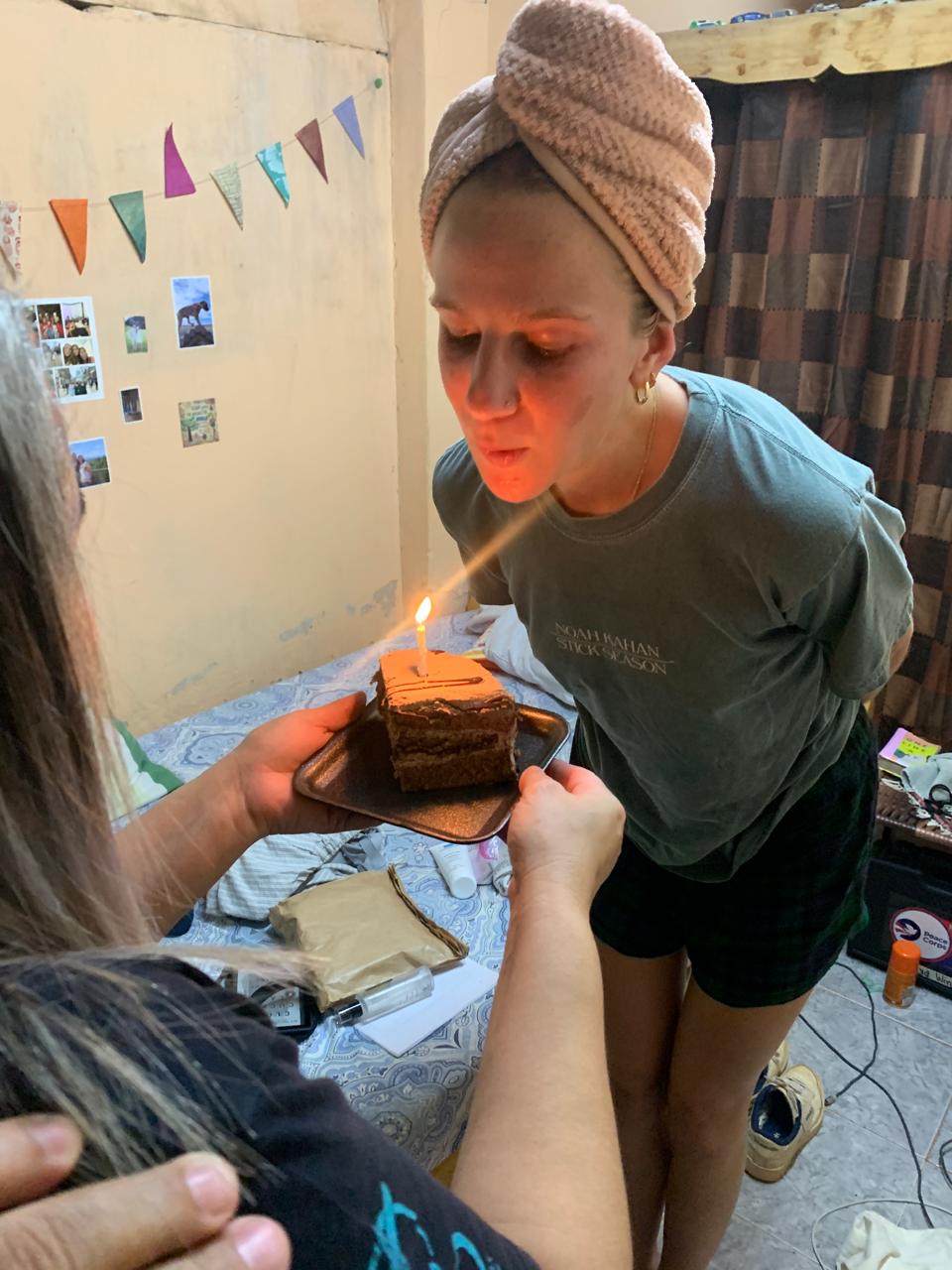 During the final week, we got the chance to dance Paraguayan dances while wearing traditional clothing, as well as hear a Paraguayan harp performance - yes it's different from a normal harp. The whole day was so fun, educational, and exciting. We also had a sweet "goodbye party" with all the host families in Costa Alegre, in which each trainee prepared a gift to thank the families for all they do for us. The families each said some words about us, which was the start of about 3 days of tears for me. The day before swear-in (December 3rd, which just so happened to be my half birthday), we visited the Peace Corps office in Asunción for the first time. The office is where we will come for all future medical and administrative needs during our two years of service, so we got to tour the facility and meet many new PC staff. And when I got home, my host parents had bought a little slice of cake to make a half-birthday wish on - the sweetest, most thoughtful gesture that reminded me of home.